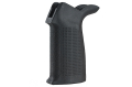 従来型のグリップアングルをベースとしてアンビ化が実現されており、全体に施されたテクスチャによって手が滑りにくいようになっています。 レシーバー下の高い位置で握ることができるように工夫されたビーバーテールエクステンションは射撃時のリコイルコントロールが快適になり より正確な銃の取り回しができます。